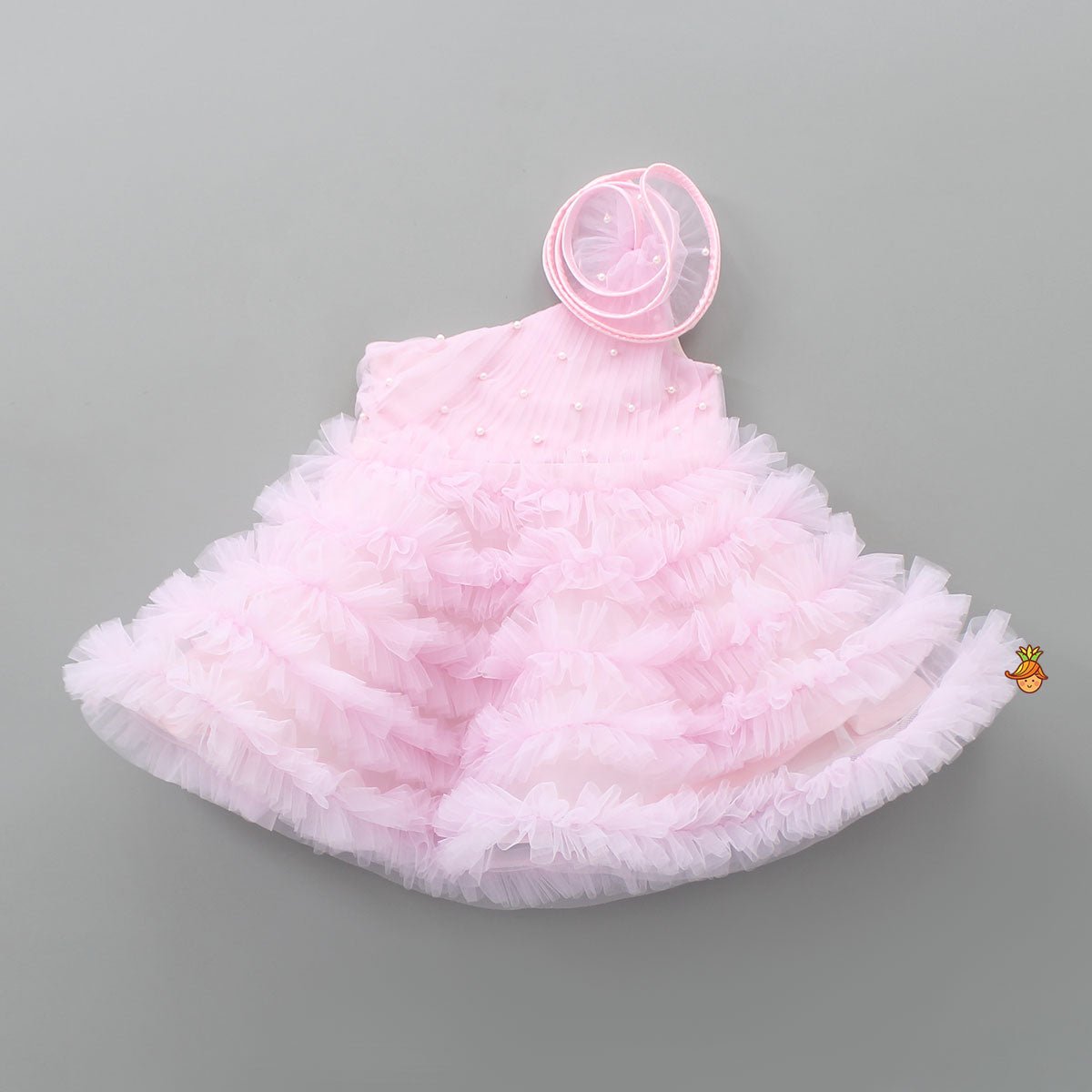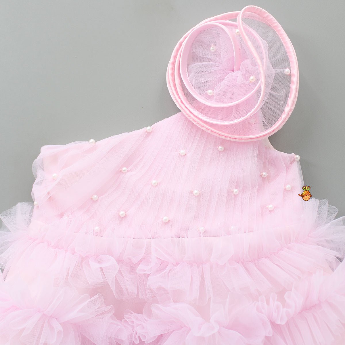 • Dress with pin-tuck detailing at the yoke and adorned with pearls