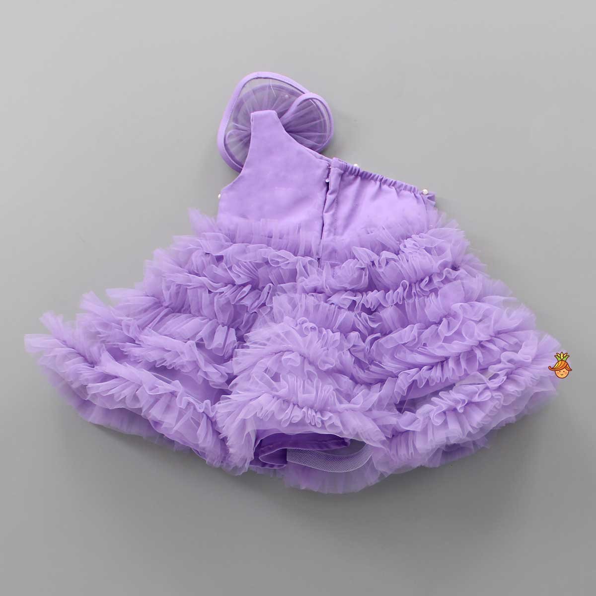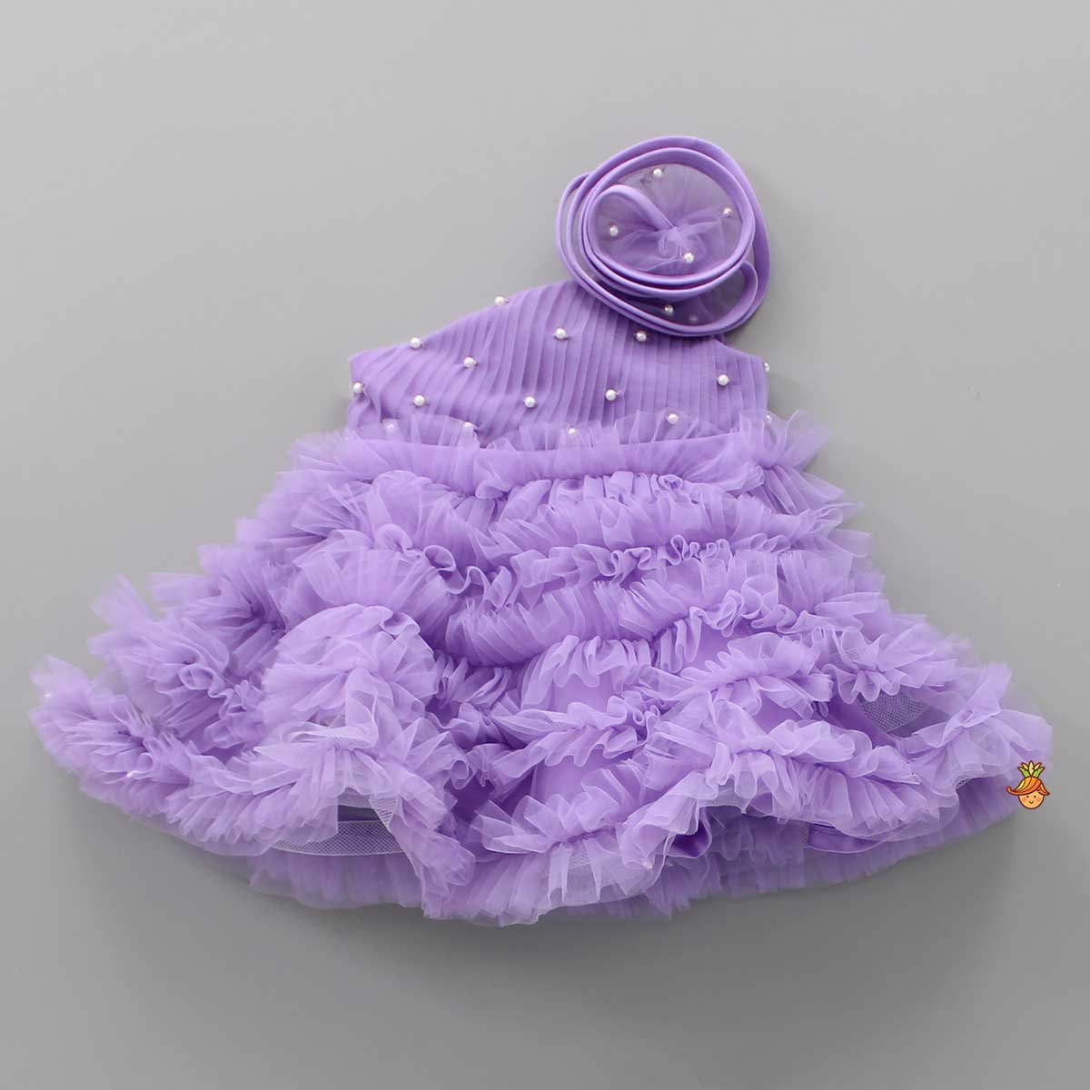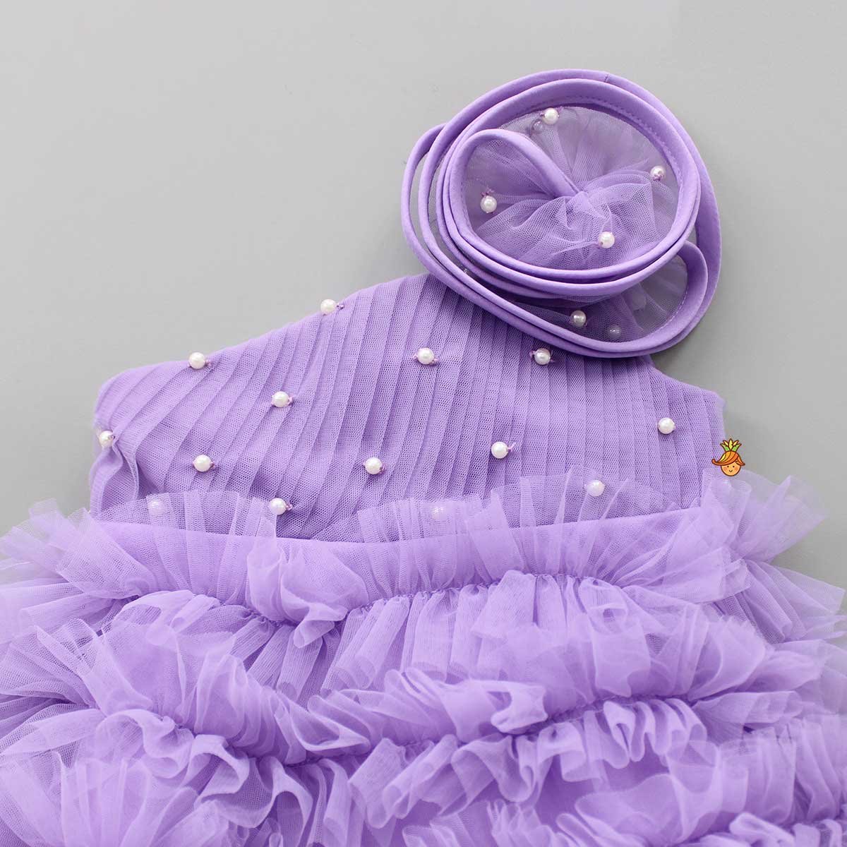 • Dress with pintuck detailing on the yoke and adorned with pearls